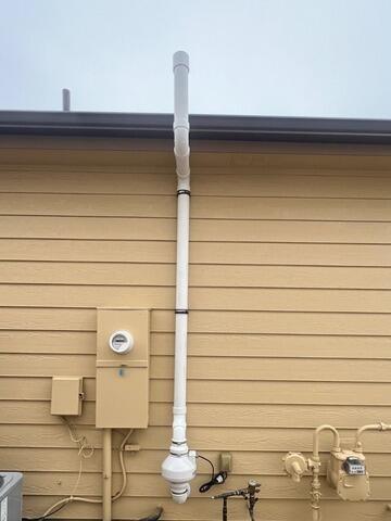 This homes existing radon mitigation fan was located in the home's conditioned space. Placing the fan in conditioned space does not match EPA and industry best practices. We came in and rerouted the fan on the exterior of the home to align with all standards.