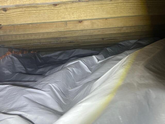 North Point Radon came in and inspected crawlspace. Upon inspection we came to the conclusion that it needed new vapor barrier.We came in and added new 12 mil vapor barrier and sealed it to the foundation wall